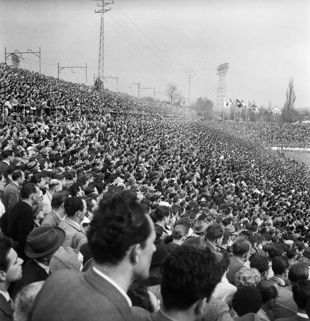 Am 25. April 1954 erlebte Basel die feierliche Eröffnung des Joggeli-Stadions. Gebaut von den Architekten Johannes Gass und Wilfried Boos, war es eines der grössten der Schweiz zu seiner Zeit. Passend zum Auftakt der «ersten richtigen Weltmeisterschaft» wurde das Stadion eingeweiht und war Gastgeber für insgesamt sechs Spiele, darunter ein mit 58’000 Zuschauern gefülltes Halbfinale. Leider endete die Reise der Schweizer Nationalmannschaft mit einer knappen Niederlage von 7:5 gegen Österreich im Viertelfinale.
