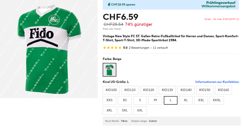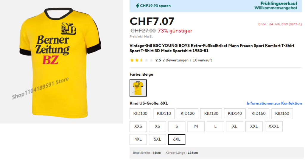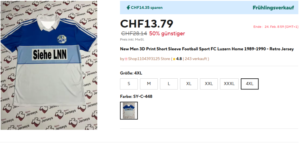 «Mittlerweile werden gefälschte FCB Trikots auf Ali angeboten, der FCB ist wieder eine Nummer», schreibt ein User unter seinem Post auf der Internetplattform X. Man kann also davon ausgehen, dass die Nachfrage nach FCB-Fanartikeln wieder gestiegen ist, was wiederum bedeutet, dass der Verein national sowie international wieder relevanter und populärer ist. Auch vom FC Lugano, dem derzeit Erstplatzierten in der Tabelle, werden Trikots aus der aktuellen Saison verkauft. Die Shirts werden zurzeit für rund sieben Franken angeboten.