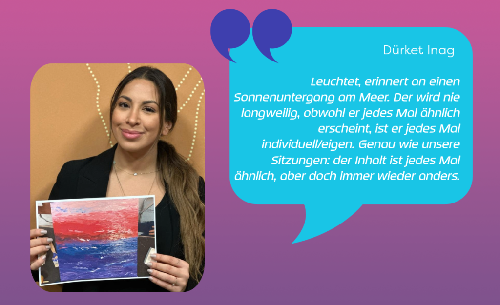 Für Baseljetzt haben sich alle Mitglieder der Gruppe die Frage gestellt, was ihnen dieses Projekt bedeutet. Um ihre Emotionen zum Ausdruck zu bringen, haben sie jeweils eines von vielen Kunstwerken einer Kreativwerkstatt aus Berlin, mit der die Gruppe momentan zusammenarbeitet, ausgesucht. Dieses erinnert sie auf eine besondere Art und Weise an ihre Arbeit am Projekt und verdeutlicht somit, was ihnen das Projekt bedeutet. Das sind die Resultate.