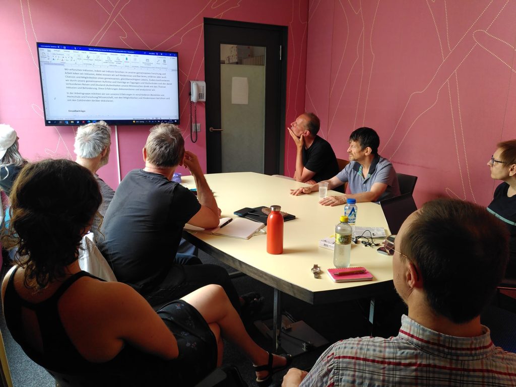 Um diese Forschungslücke zu schliessen, arbeiten die beiden seit zehn Jahren aktiv im Verein Forschungsgruppe Kreativwerkstatt mit. «Wir sind eine Gruppe von unterschiedlichen Menschen, mit und ohne Beeinträchtigung, die zusammen Forschung betreiben», erklärt Irina. Dabei konzentrieren sie sich auf Themen, die für Personen mit Beeinträchtigungen auch wirklich relevant sind. Das Projekt hat seinen Anfang an der Uni Zürich, wo man sich damals das Ziel setzte, Inklusionsforschung tatsächlich inklusiv umzusetzen.