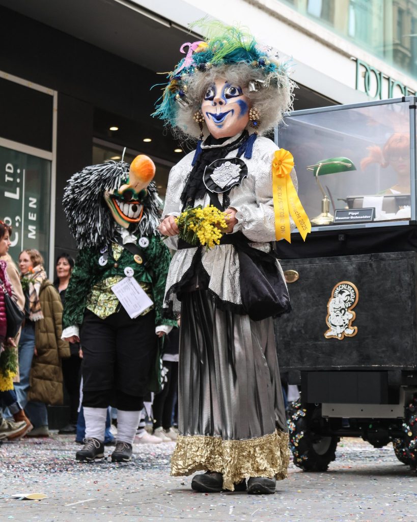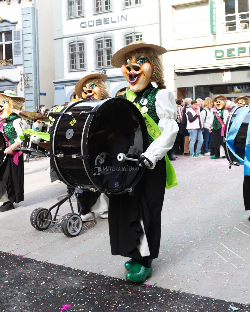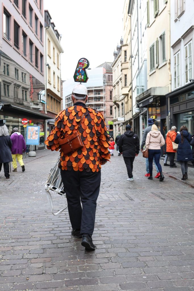 Nach dem Morgenstreich war für viele Fasnächtler und Fasnächtlerinnen am Nachmittag ein dem Sujet entsprechender Auftritt angesagt. Am Cortège präsentierten die verschiedenen Formationen erstmals ihre Zugkostüme mit Larven, Requisiten und «Zeedeln» mit Mundart-Versen. All das wurde dem Sujet entsprechend entworfen und gebastelt.