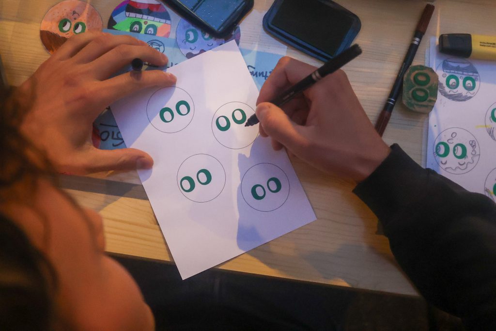 Lust, nach dem Cider-Schwips den Bleistift zu schwingen? Wie wäre es mit einem Selbstporträt im Comic-Stil? Dachte ich mir doch! Genau das kannst du am Stand des Cartoonmuseums machen. «Comics sind für alle Menschen zugänglich», erklärt Lisa Grenzebach vom Cartoonmuseum dabei. «Jeder kann mit einem Bild etwas anfangen, und der Text rundet das Ganze ab. So lassen sich sowohl gesellschaftskritische als auch humorvolle Themen behandeln.» Das Selbstporträt ist inzwischen fertig gezeichnet. Nun wird es noch zu einem Anhänger gestanzt und kann ganz einfach an jedes Kleidungsstück angebracht werden.