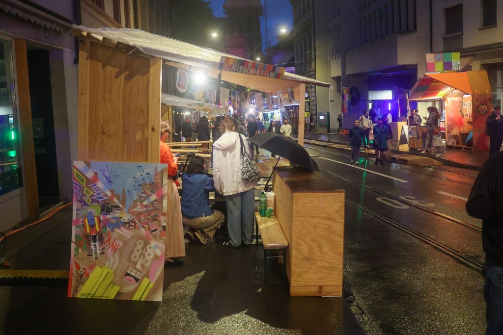 Wenn in Basel die Menschen in der Elisabethenstrasse von Stand zu Stand tummeln, ist klar, was los ist: Zeit fürs Flâneur Festival. Kreative Angebote, Workshops, kulinarische Genüsse und Musik – das Angebot ist vielfältig, die Farben bunt, die Stimmung trotz des Regens entspannt.