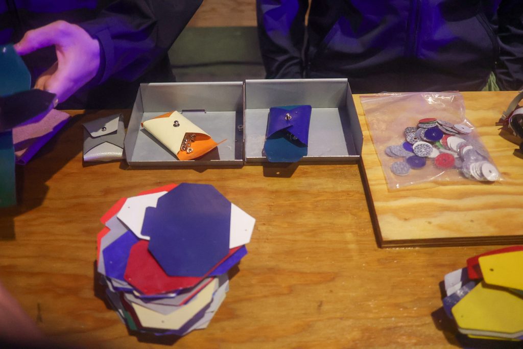 Der Abend neigt sich dem Ende zu, der Magen ist voll, das Portemonnaie leer. Dagegen hilft nur eins: Bastle dir ein neues Portemonnaie. Am «Freitag»-Stand kannst du aus zwei kleinen Planen, einem Knopf und etwas handwerklichem Geschick eine eigene Brieftasche anfertigen. Die Farbkombination ist dir überlassen. Ein kleiner Wermutstropfen bleibt jedoch: Füllen musst du das neue Portemonnaie selbst.