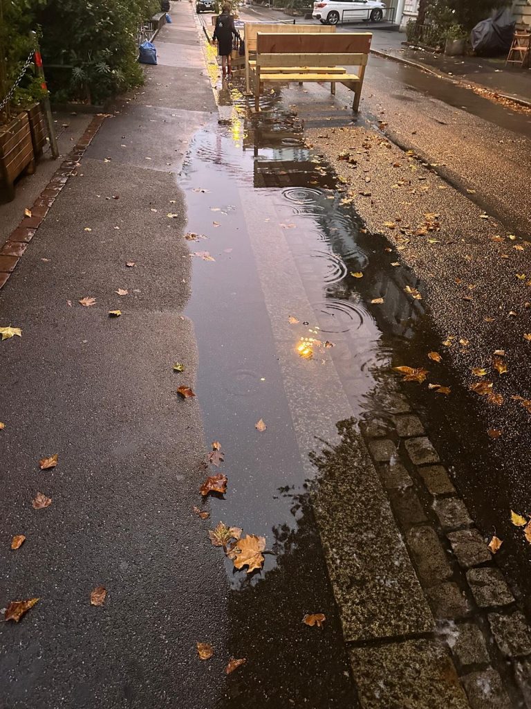 «Bei der Boulebahn kann das Wasser nicht ablaufen, weil das Rohr zu schmal ist. Es staut sich, läuft aufs Trottoir und bis ganz nach vorne. Das Behindertenheim kommt so gar nicht mehr hinein», ärgert sich Saladin. Er habe deshalb bereits das Bau- und Verkehrsdepartement informiert, doch bisher sei von dort nichts unternommen worden.