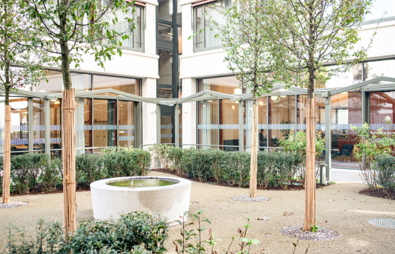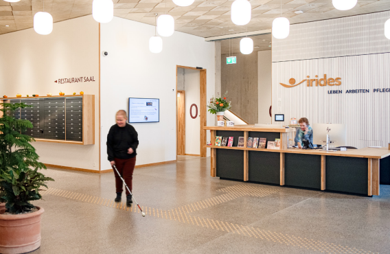 Das Gebäude, der Neubau des Blindenheims, wurde vor rund einem Jahr eröffnet. Es trägt den Namen «Zentrum Irides» und hat Platz für 99 Menschen mit Unterstützungsbedarf. Nebst den Pflegezimmern befinden sich auch Büros, Ateliers, Medikationsräume, Küchen sowie ein Restaurant mit Bistro. Insgesamt sei das Gebäude beispielsweise mit speziellen Licht- und Akustikverhältnissen in den Innenräumen auf blinde und sehbehinderte Menschen ausgerichtet.
