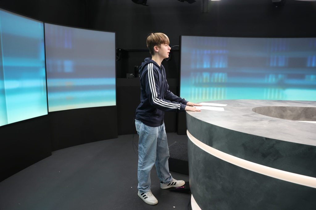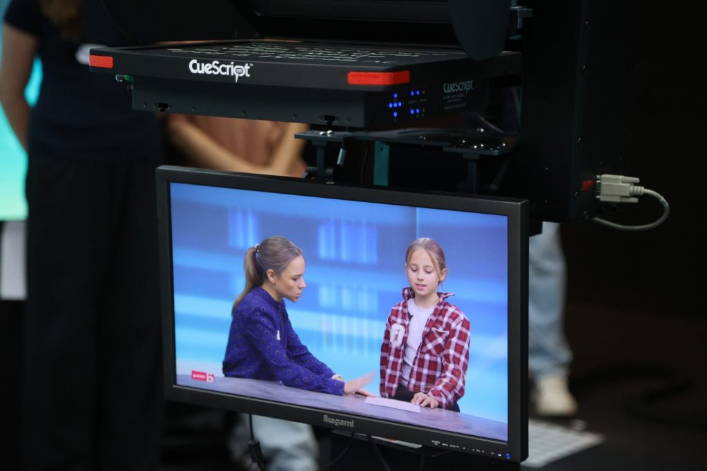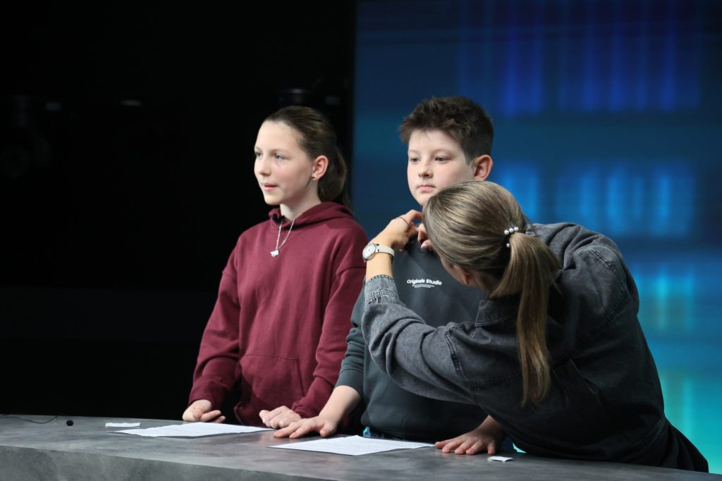 Da man in der Medienbranche bekanntlich nicht unbedingt in den frühen Morgenstunden arbeitet, ging es für die Kids erst um 10 Uhr los. Nach der Vorstellungsrunde ging es weiter mit der Newssendung «Punkt6», moderiert von Dani von Wattenwyl. Bevor sie selbst in die Rolle der Moderatorin oder des Moderators schlüpfen durften, bekamen sie wertvolle Tipps direkt vom Profi.