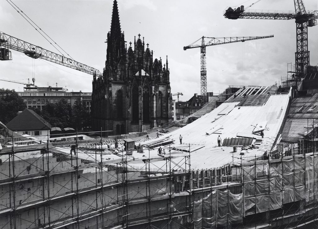 Vor 50 Jahren wurde das alte Stadttheater gesprengt. Im selben Jahr wurde das neue Theater eröffnet. Eine Ausstellung bietet unterschwellige Einblicke in die architektonische Geschichte des Theaters Basel.