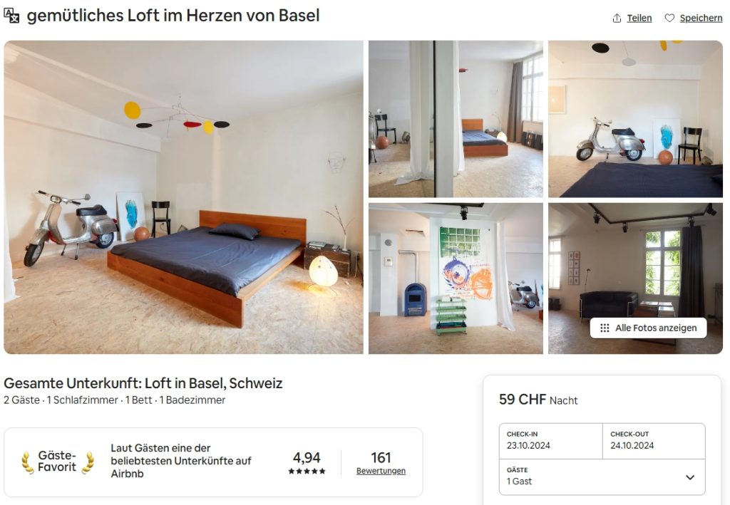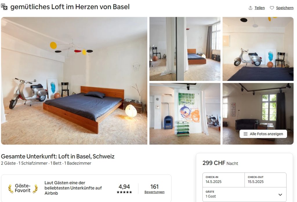 Schaut man sich die Zahlen zu den Mietpreisen auf Plattformen wie Airbnb und Booking.com an, wird schnell klar, warum er seine Wohnung vermietet. Während der ESC-Woche haben sich die Mietpreise vervielfacht. Kostet ein «gemütliches Loft im Herzen von Basel» normalerweise 59 Franken pro Nacht, muss man für die gleiche Unterkunft während der ESC-Woche stolze 299 Franken pro Nacht hinblättern.