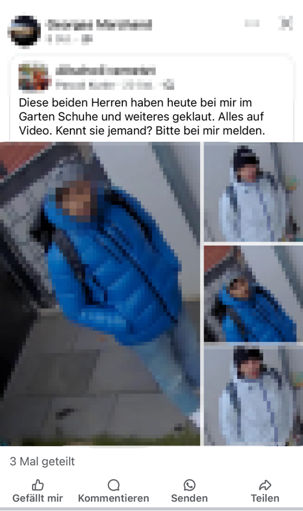 In den sozialen Medien fahnden Privatpersonen mit Aufnahmen ihrer Überwachungskameras selbst nach Dieben oder Einbrechern. Die Polizei rät dringend von diesem Vorgehen ab, da man sich selbst haftbar machen kann.