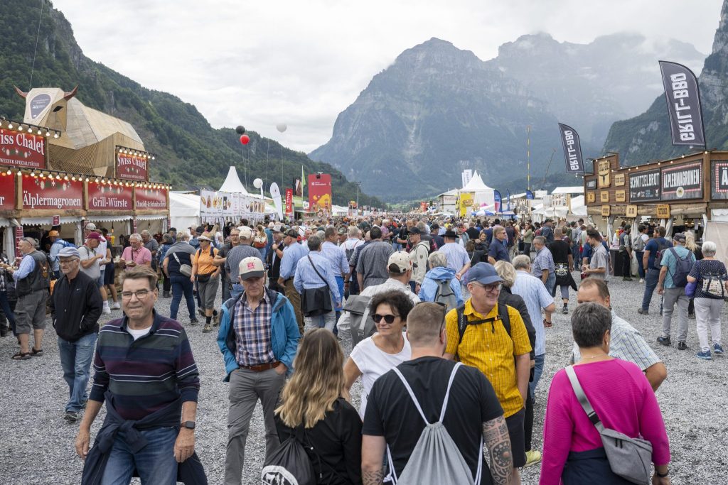 Obwohl das Herzstück – die Glarnerland-Arena mit 56’500 Sitzplätzen – am Freitag noch geschlossen war, reisten bereits zehntausende Schwingfans ins Glarnerland. Bis am Sonntag werden rund 350’000 Besuchende erwartet.
