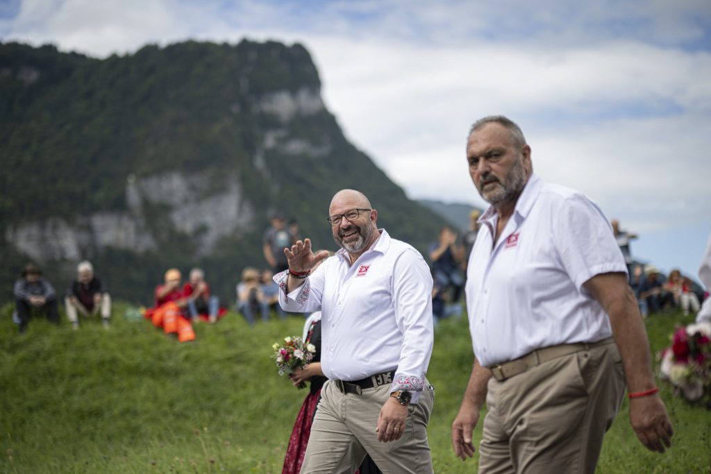 Eine weitere wichtige Tradition folgte am Freitagmittag im historischen Freulerpalast im benachbarten Näfels GL. Hier empfing das OK die Fahne des Eidgenössischen Schwingerverbands, die von der Delegation des letzten Austragungsorts in Pratteln BL hergebracht wurde.