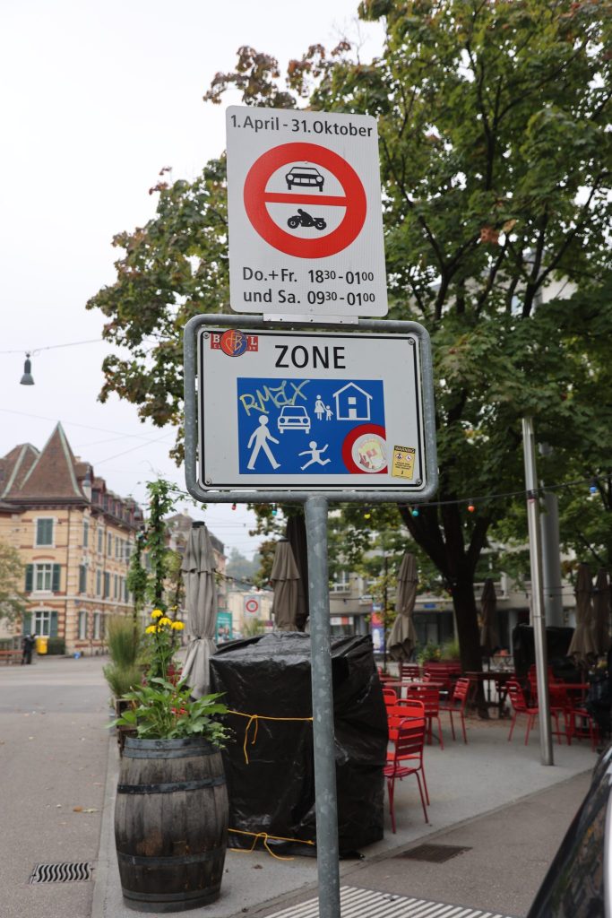 Der Tellplatz ist der Treffpunkt schlechthin im Gundeli-Quartier. Für die Anwohnenden hat er Dorfplatzcharakter. Damit das rege Quartierleben dort insbesondere in den Sommermonaten ungestört stattfinden kann, hat ein breit abgestütztes Komitee im Frühling 2024 mittels Petition erreicht, dass der Tellplatz zu bestimmten Zeiten autofrei bleibt. Verbotsschilder weisen darauf hin, dass die Durchfahrt für Autos und Motorräder am Donnerstag- und Freitagabend sowie am Samstag während des Marktes nicht gestattet ist. Das Verbot gilt jeweils von April bis Ende Oktober – eben dann, wenn der Tellplatz für die Anwohnenden zum «Boulevard» wird. So ganz klappen will das bislang aber nicht.