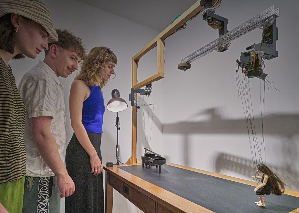 Ein anderes Werk erzählt mit kleinen Marionettenfigürchen, die von Roboterarmen geführt werden, von einem traurigen Walzer und einer Tänzerin, die nicht tanzen kann («Sad Walz and the Dancer who Couldn’t Dance»). Es ist eine reizend-melancholische Szenerie.