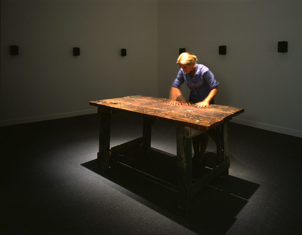 Wiederum andere Werke fordern zur geisterhaften Interaktion auf: So ein Tisch («To Touch»), der mit Handbewegungen auf der Platte den Raum zum Erklingen bringen. Oder ein Tasteninstrument, Mellotron genannt («The Instrument of Troubled Dreams»), auf dem sich ganze Film-Soundtracks komponieren lassen, wie Cardiff bemerkte.