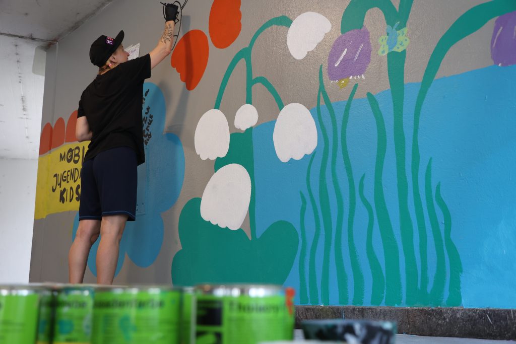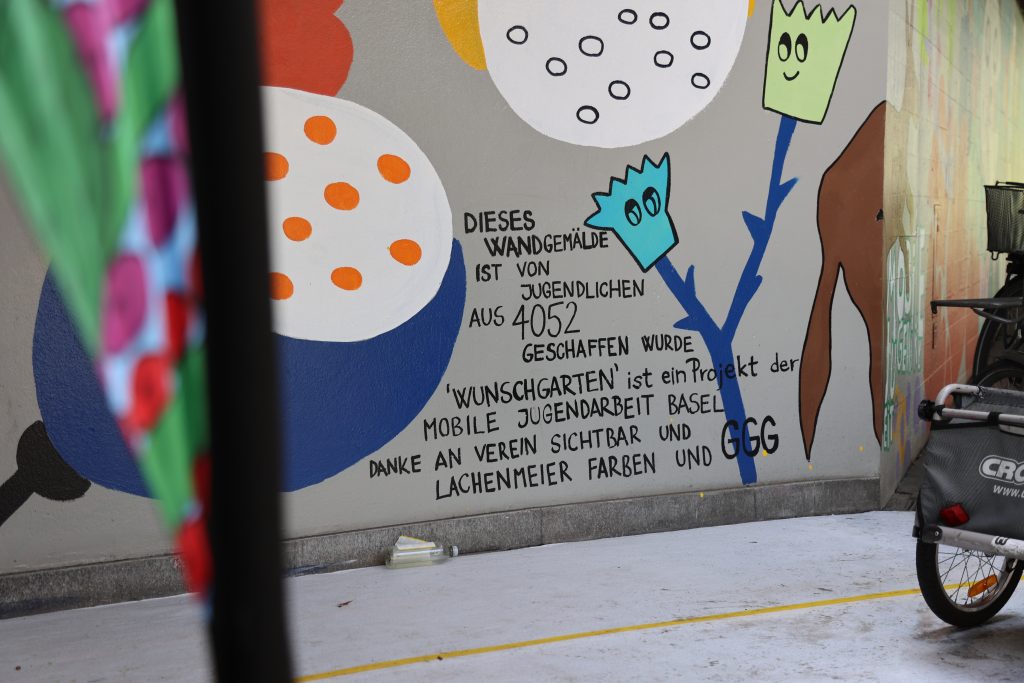 Von Mittwoch bis Freitag bemalten Kinder die Unterführung bei der Schwarzwaldbrücke. Diese einmalige Möglichkeit zur Street-Art ermöglichte das Projekt «Wunschgarten 4052» der Mobilen Jugendarbeit Basel.