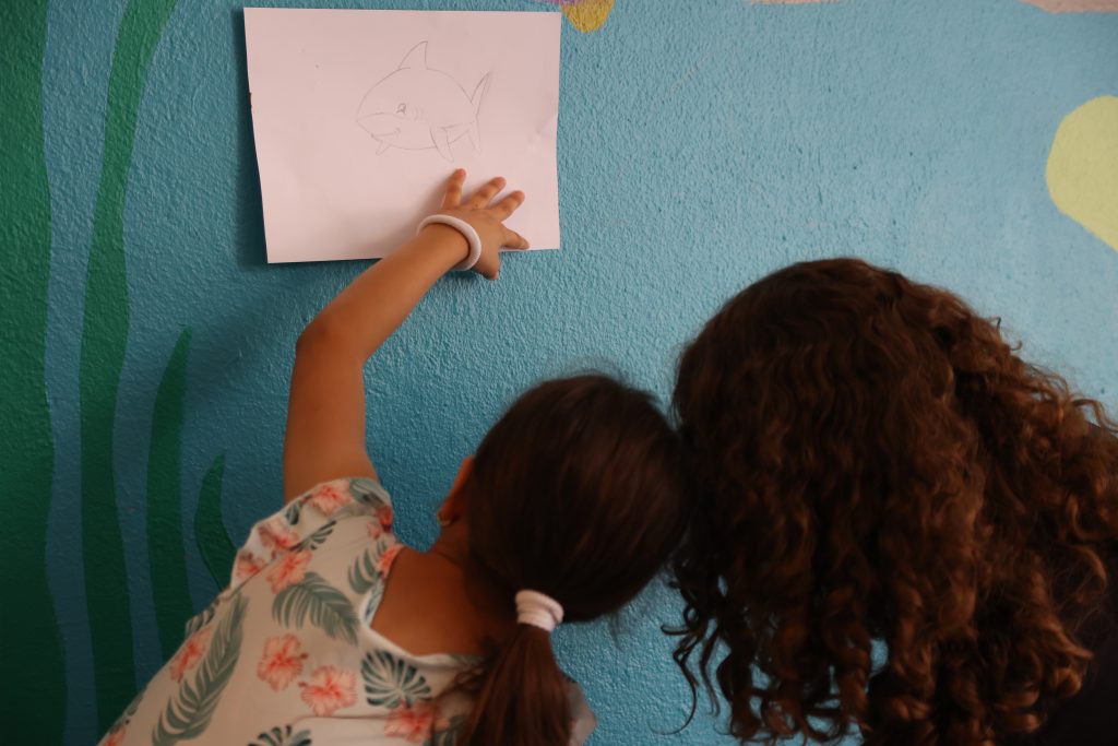 An den letzten drei Tagen vor den Sommerferien konnten angehende Jugendliche im Altersbereich neun bis elf Jahre unangekündigt und gratis vorbeischauen und beim Bemalen der Wand helfen. Gemalt wird eine Komposition aus Pflanzen- und Tiermotiven. Die einzelnen Figuren wurden vorwiegend in früheren Workshops erstellt. Aber: «Zum Gesamtbild kommen auch einige Motive dazu, die gerade vor Ort gestaltet werden», erklärt die Künstlerin Füsun Ipek im Gespräch mit Baseljetzt.