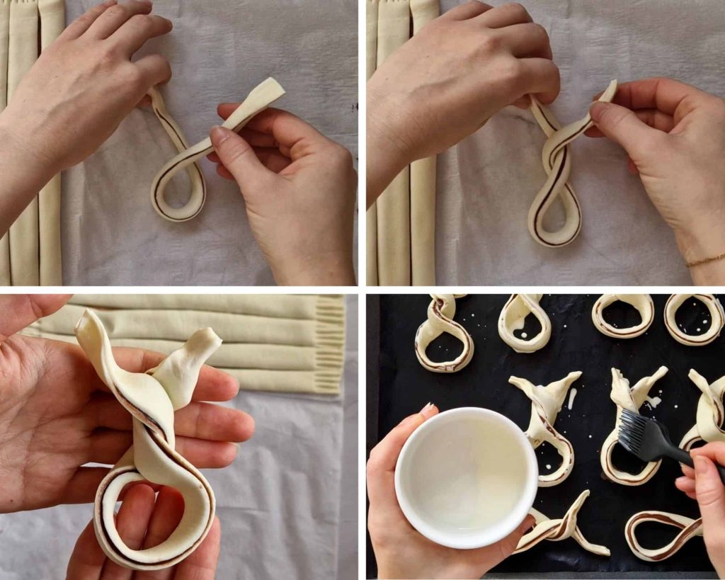 - Den Teig gemäss Bild zu einem Hasen drehen.