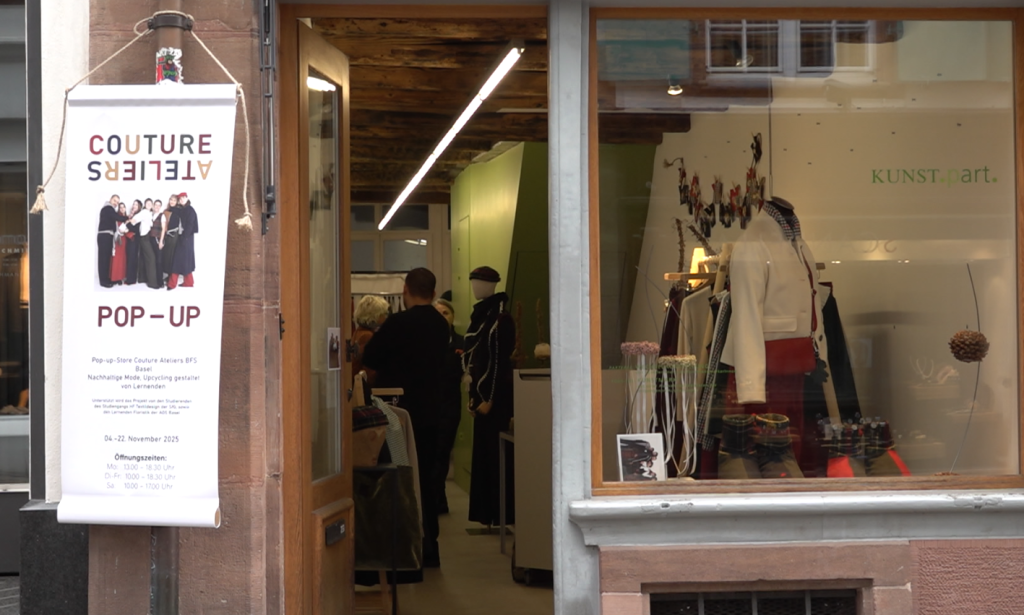 Zurzeit findet ein Experiment im Couture Ateliers statt. Lernende der Ausbildung Bekleidungsgestalter:in EFZ eröffnen ihren eigenen Pop-up Laden. Dort präsentieren sie ihre selbst genähten Kleidungsstücke.