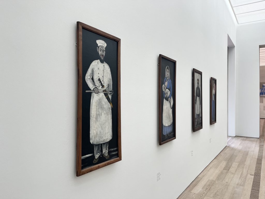 Die Motive prangen dabei in leuchtenden Farben vor einem dunklen Hintergrund. So etwa der «Fischer in rotem Hemd». Hier fliesst der Hintergrund mit dem Vordergrund, also dem Fisch in den Händen des Porträtierten zusammen. Der Strohhut des Fischers gleicht einem Heiligenschein, was wiederum auf die Ikonenmalerei anspielt, wie Daniel Baumann, Gastkurator und Direktor der Kunsthalle Zürich, am Freitag vor den Medien erklärte.