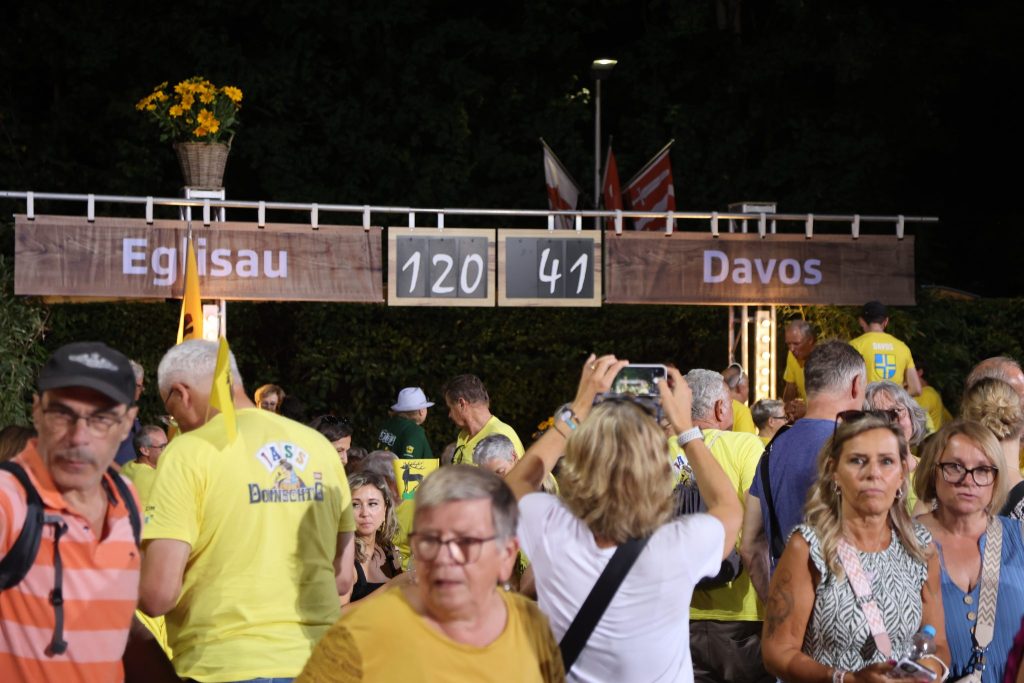 Das Kartenglück ist an diesem Abend eindeutig den Davosern hold, die in der Oberwiler Hitze cool bleiben und den Sieg nach Hause bringen. Im Vorfeld der Sendung sind die Bündner bereits guten Mutes. «Heute bringen wir es heim!», sagen Manuela Hubert und Hans Keller. Sie gehören zum Davoser Fanclub, der rund zwei Tischreihen füllt. Heute müsse es klappen, nachdem die Bündner Gemeinde in Crans-Montana ja verloren hatte, nun aber als einer von zwei «Lucky Loosern» ins Duell gegen Eglisau ging.