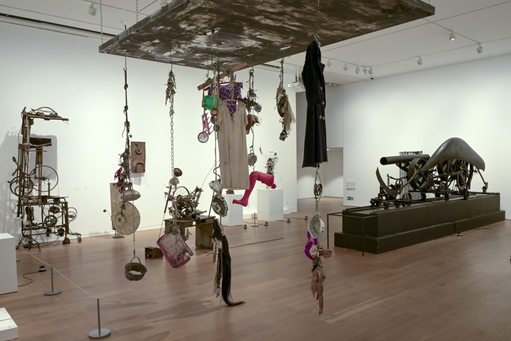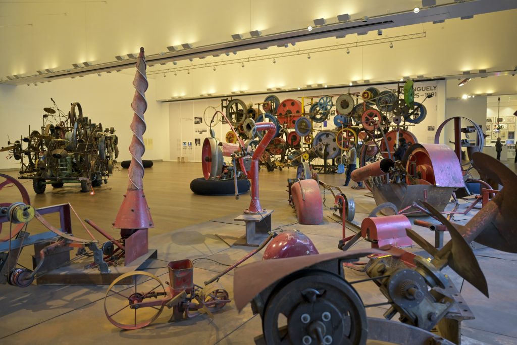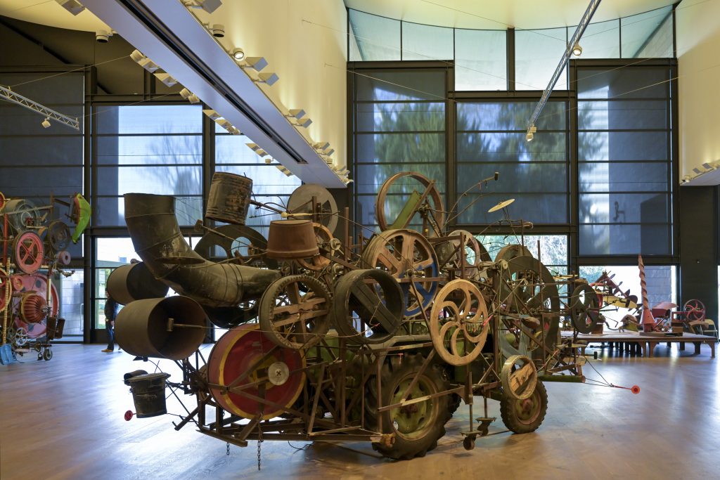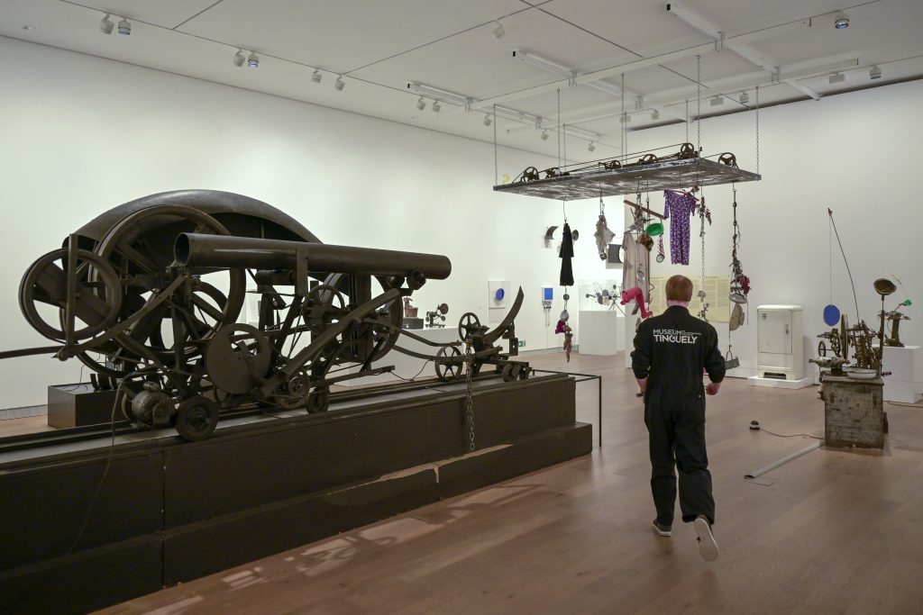 Es geht weiter mit den berühmten chaotischen Schrottmaschinen der 1960er-Jahre, die Tinguelys Ruf als Schrottkünstler begründeten – und mit den grossen schwarzen performativen Arbeiten, die durch ihre ausladenden Bewegungsabläufe für viel Aufmerksamkeit sorgten.