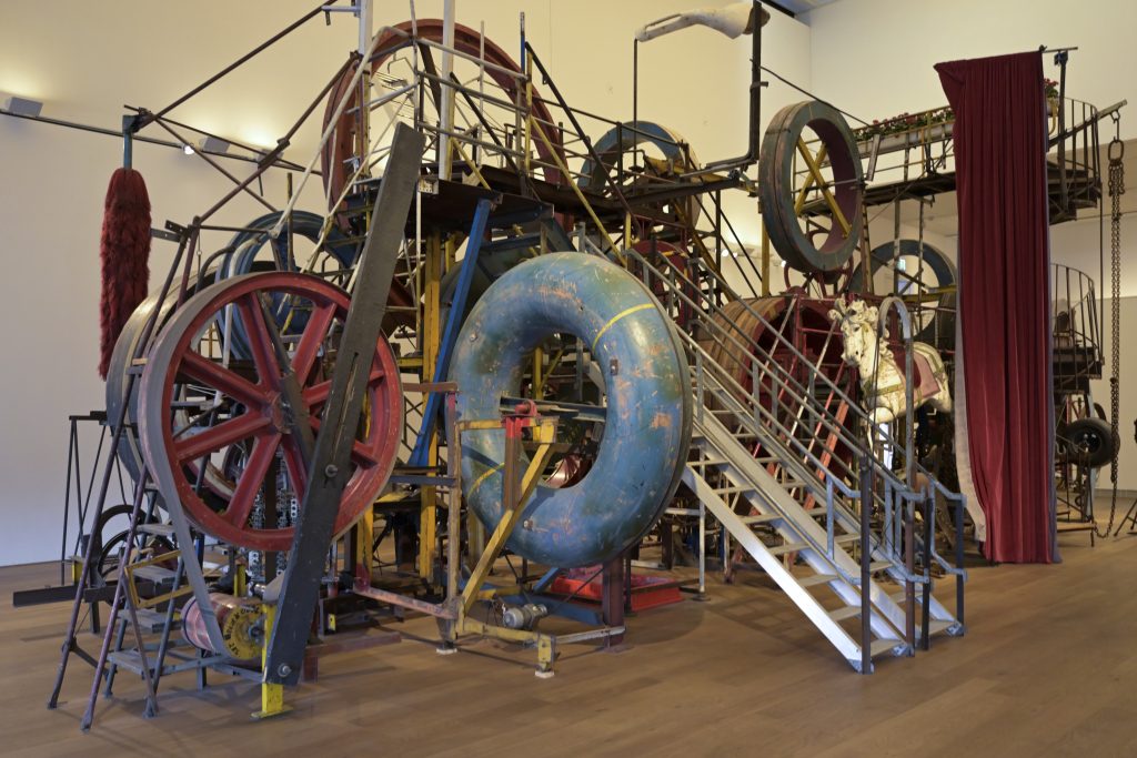 Empfangen wirst du in der Ausstellung von einem Neuankauf des Museums, von Tinguelys monumentalen Werk «Éloge de la folie», das eine ganze Wand ausfüllt. 1966 hat der Künstler dieses Werk, das sich an Erasmus’ «Lob der Torheit» anlehnt, als Bühnenbild für eine Ballettproduktion von Roland Petit in Paris konstruiert.