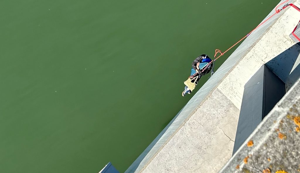 Die Protestaktion an der Basler Dreirosenbrücke ist am Freitagnachmittag zu Ende gegangen. Die Aktivist:innen seien freiwillig ins Wasser gesprungen, teilte die Polizei mit. Von Seiten der Aktivist:innen klingt dies anders. Sie seien mit Gewalt von den Seilen entfernt worden, eine Person fiel ins Wasser und wurde angeblich von Polizeibooten flankiert.