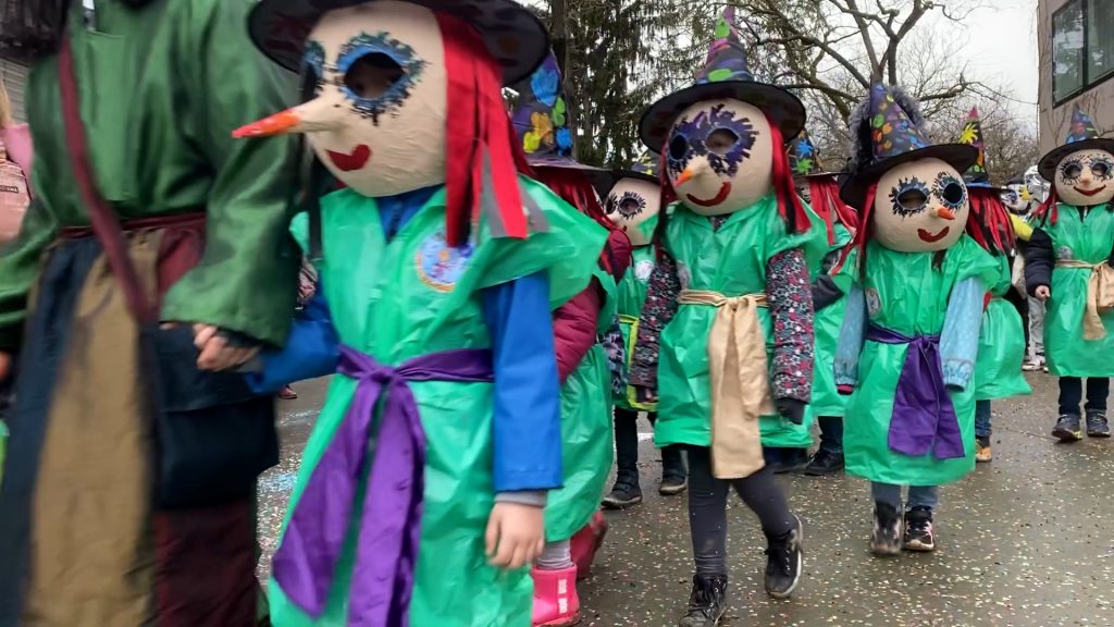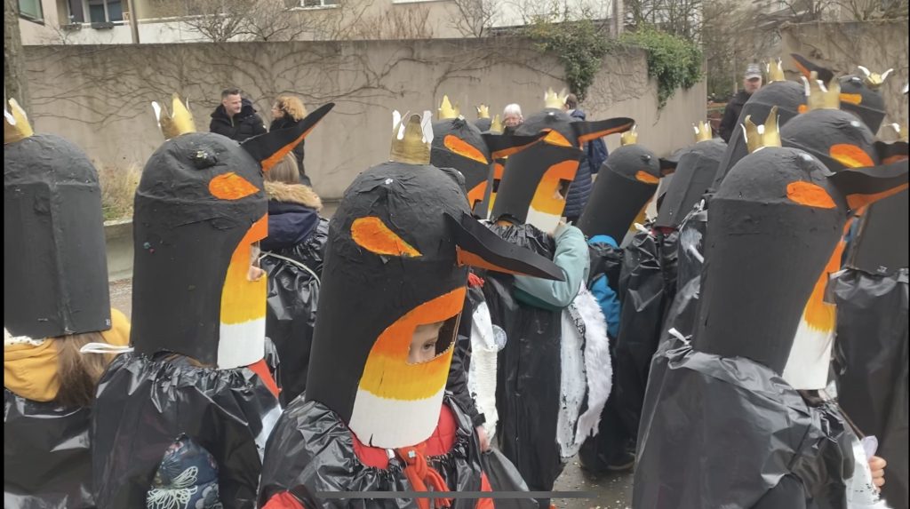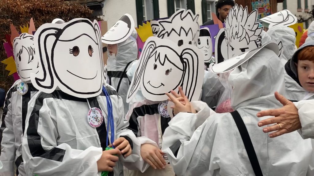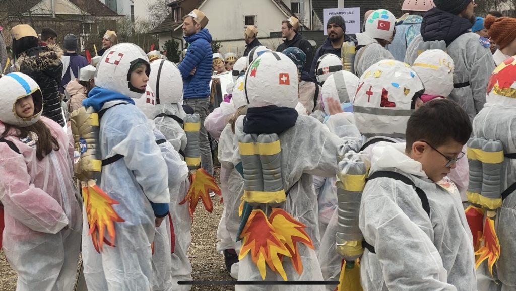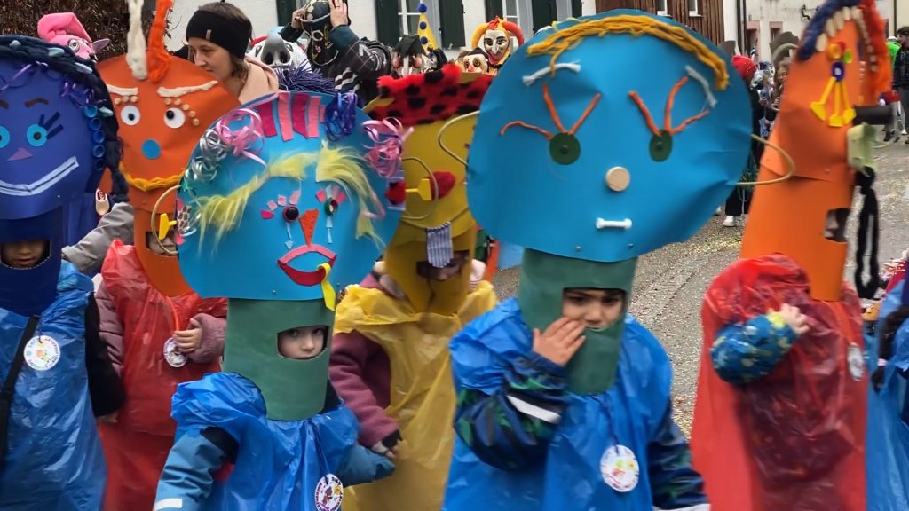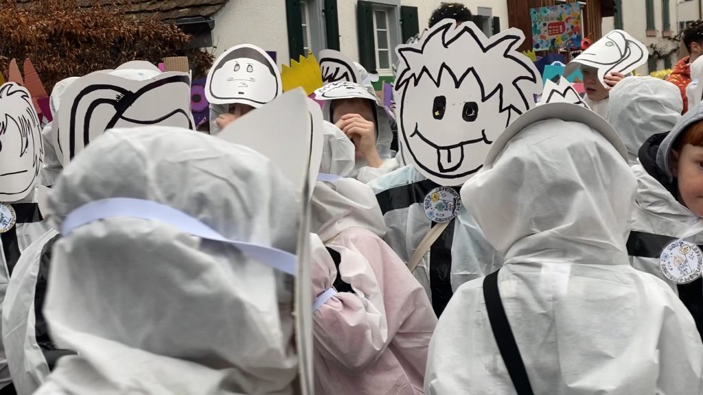 In selbstgebastelten Kostümen und Larven sind am Freitag rund 2’000 Kinder aus Riehen und Bettingen durchs Dorf gezogen. Sie besuchen in den beiden Gemeinden Schulen, Institutionen oder Tagesstätten. Am 9. Februar haben sie sich alle im Park getroffen und sind begleitet von Pfyffer:innen, Drummler:innen und Guggen um zehn Uhr losmarschiert – via Wendelins-/Rössligasse, durch das Webergässchen, die Schmiedgasse, Bahnhofstrasse und zurück via die Schmiedgasse bis zur Endstation auf den Parkplätzen beim Gemeindehaus. Dort gab es für die Kinder klassisch «Fastewäie».