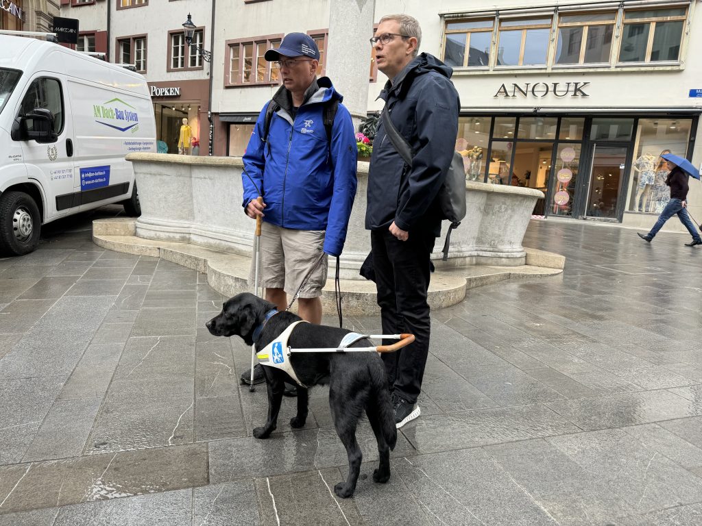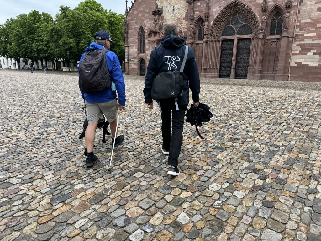 Im Rahmen der Aktionstage «Zukunft Inklusion» bietet die Stiftung Schweizerische Schule für Blindenführhunde Allschwil Führungen durch Basel an. Allerdings aus der Sicht einer sehbehinderten Person. Ronny Ramseier ist seit seinem 22. Lebensjahr blind und führt die Gruppe gemeinsam mit seiner Blindenführhündin Hetty an die schwierigen Orte.