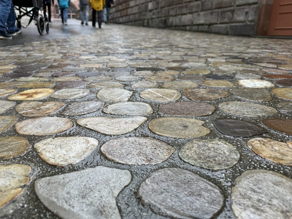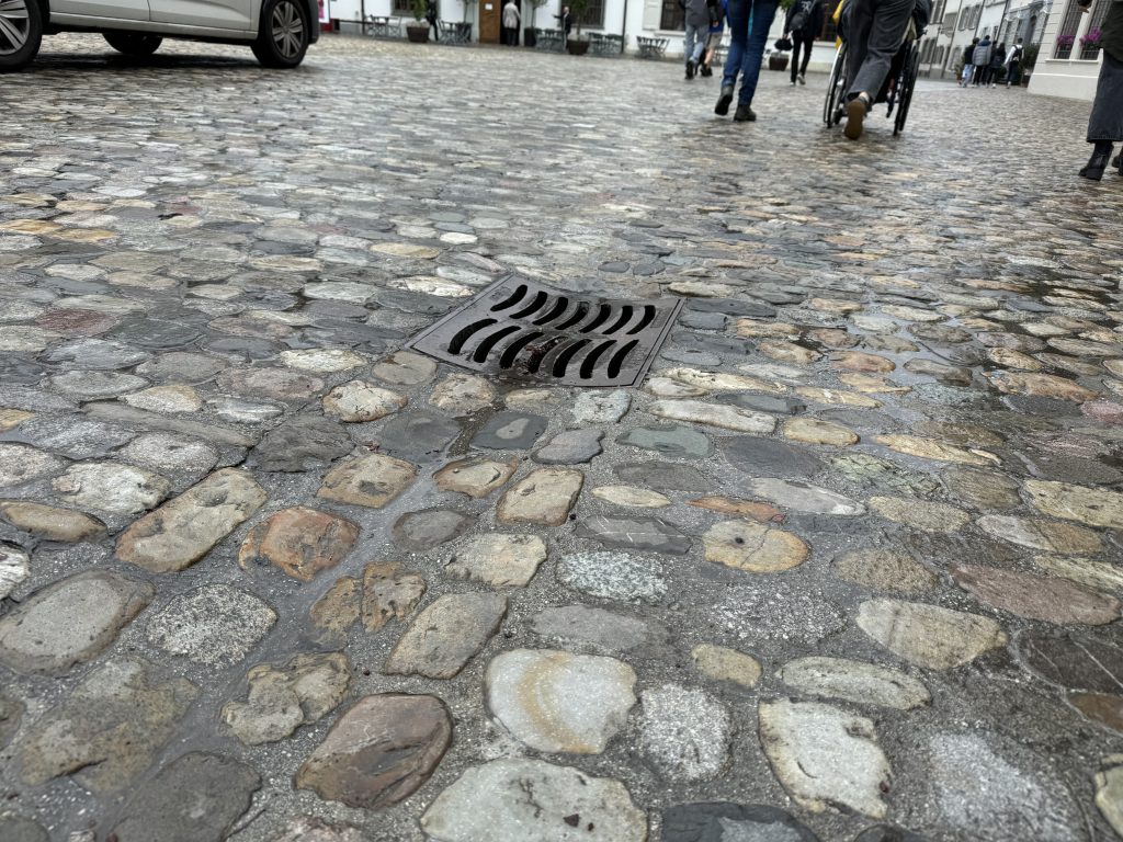 Vorbildlicher sieht es auf dem Münsterberg aus. Links und rechts wurde das alte Kopfsteinpflaster abgeschliffen, damit Sehbehinderte mit ihrem Blindenstock nicht hängen bleiben. Der Teerbelag in der Mitte erleichtert auch Menschen im Rollstuhl den Auf- und Abstieg.
