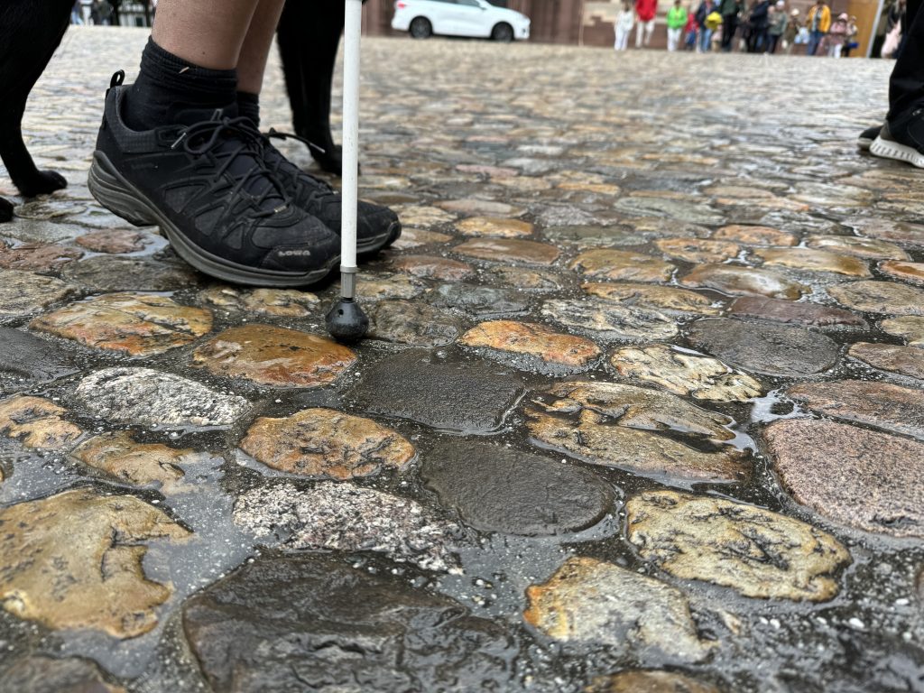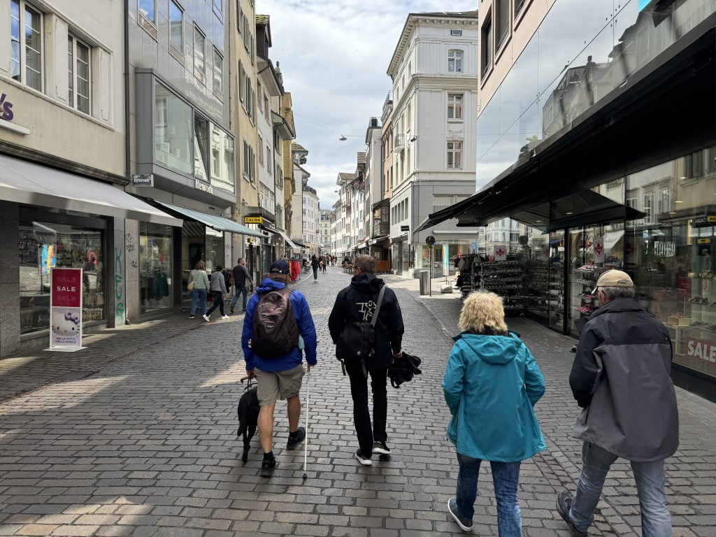 Die neuen Pflastersteine, die die Freie Strasse schmücken, mögen vielleicht optisch überzeugen, für Sehbehinderte sei der neue Boden aber alles andere als einladend. «Es gibt weder Regenrinnen noch andere Orientierungslinien an denen ich mich in der Freien Strasse orientieren könnte», erklärt Ronny Ramseier den Teilnehmenden.